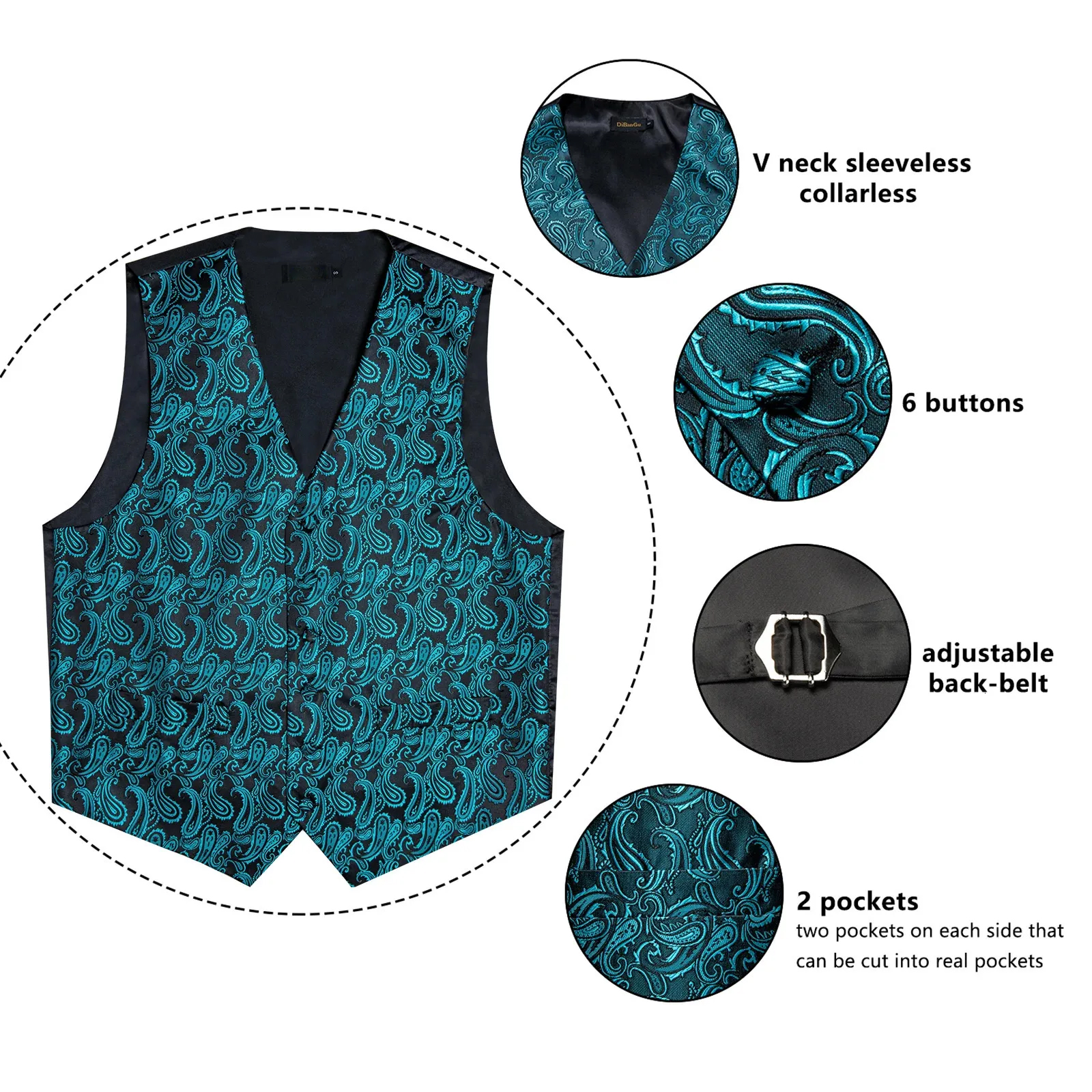 Paisley Suit Vest For Men Wedding Prom Waistcoat Necktie Pocket
