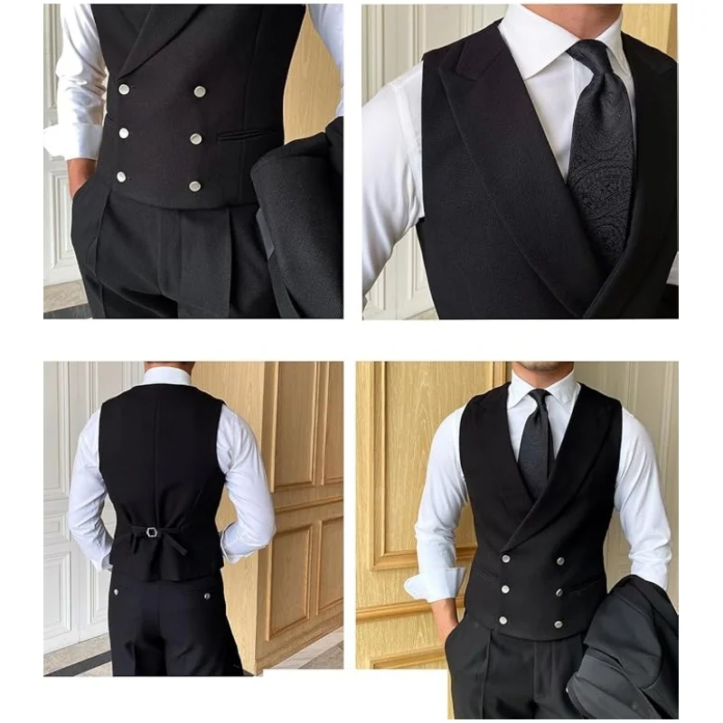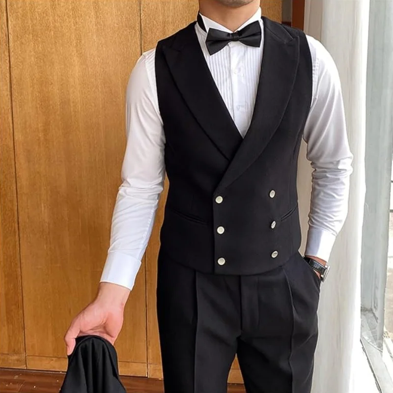 Men's Double Breasted Suit Vest Vintage Elegant Slim Fit Dress Gilet Wool Blend