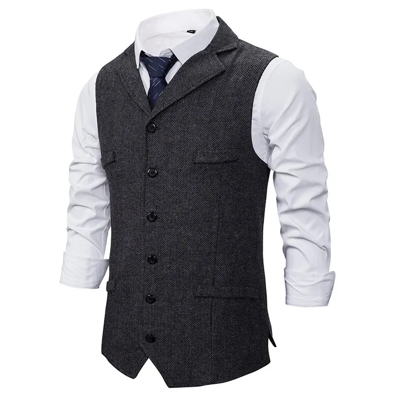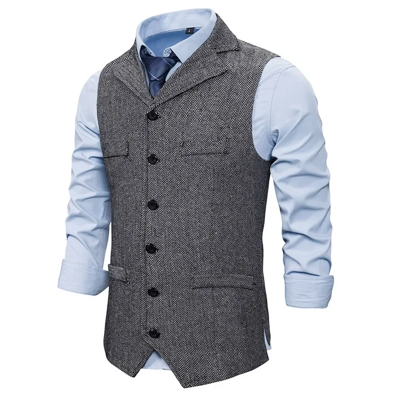 Men's Single-breasted Lapel Vest Jacket Sleeveless Suit Vest Casual