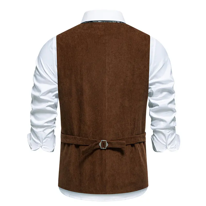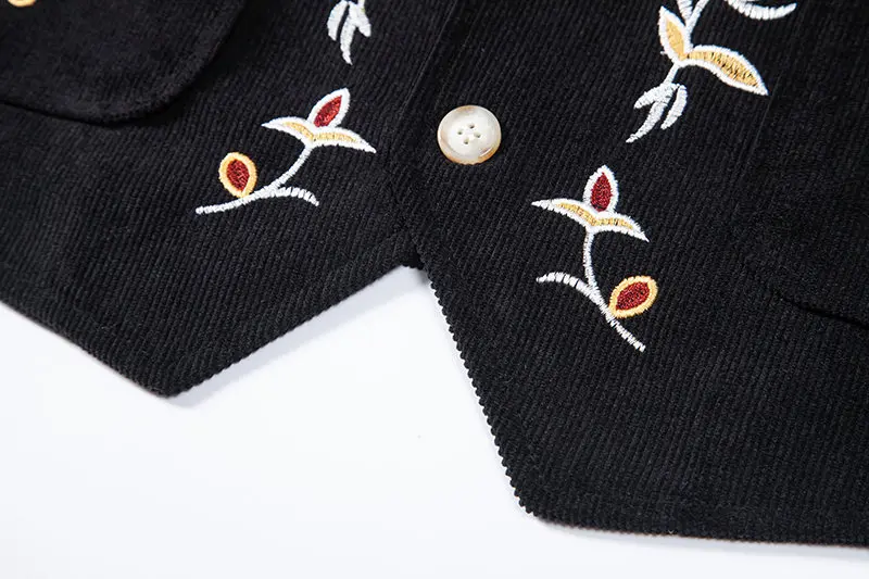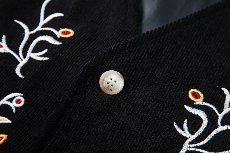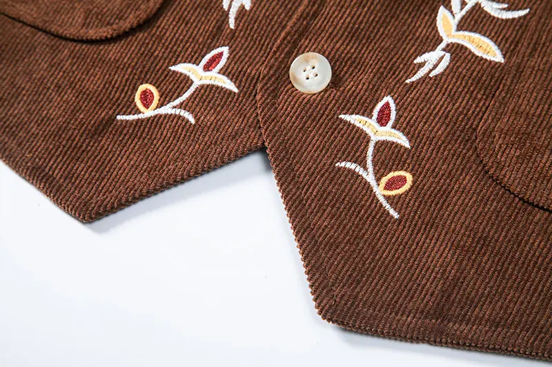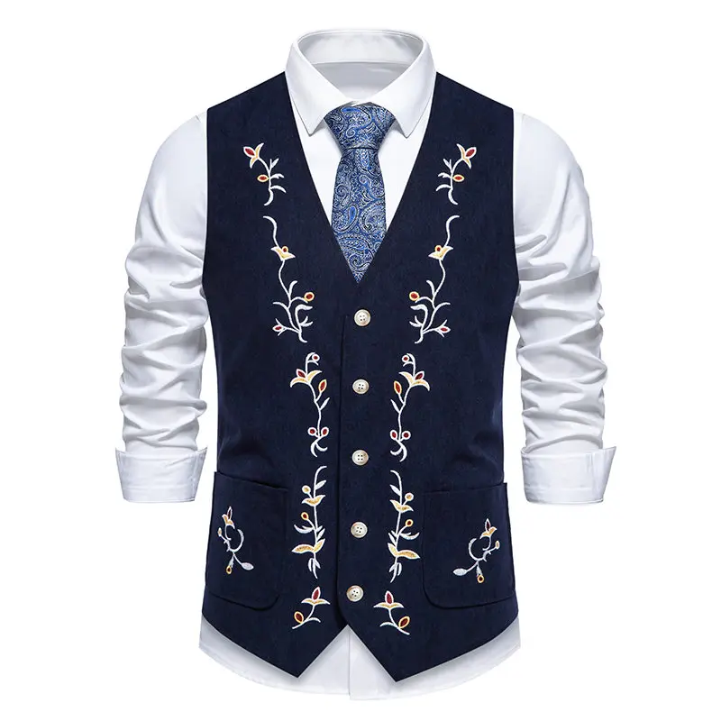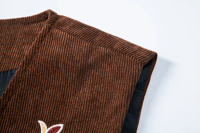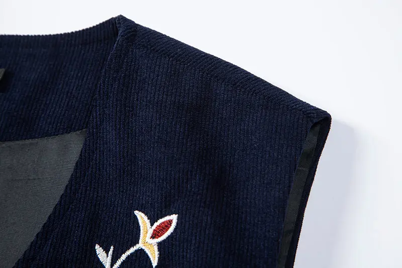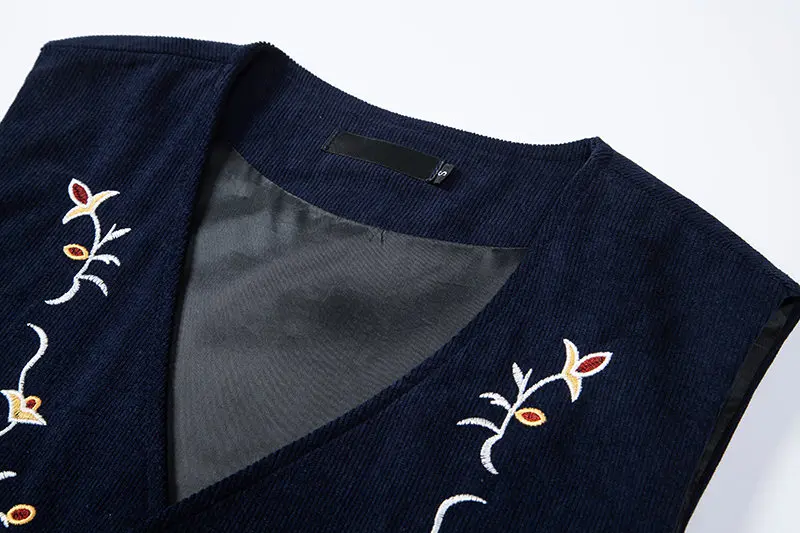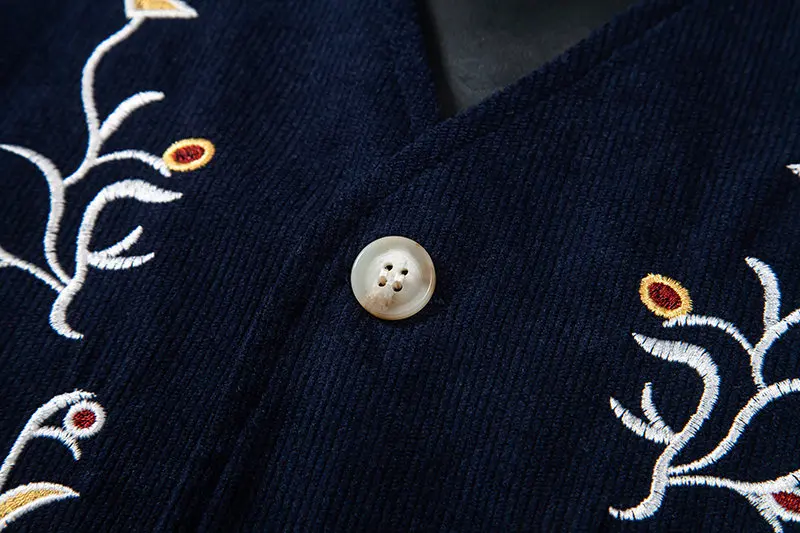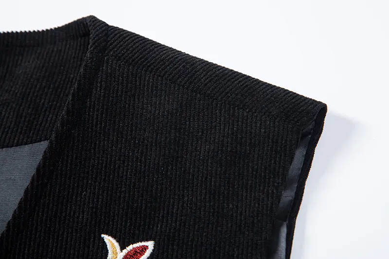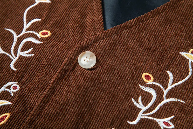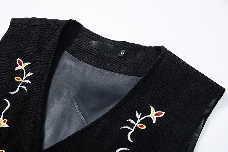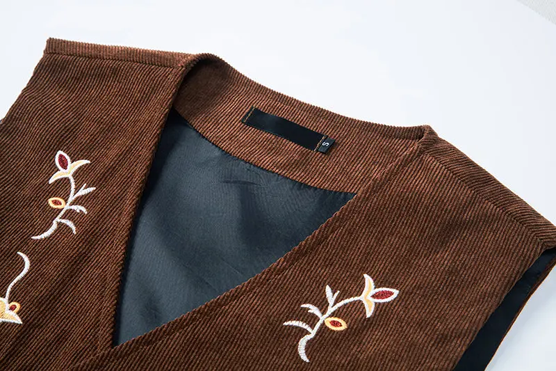 Corduroy Vest For Men Waistcoat Floral Embroidery Chaleco Vintage Dress Men Suit Vest