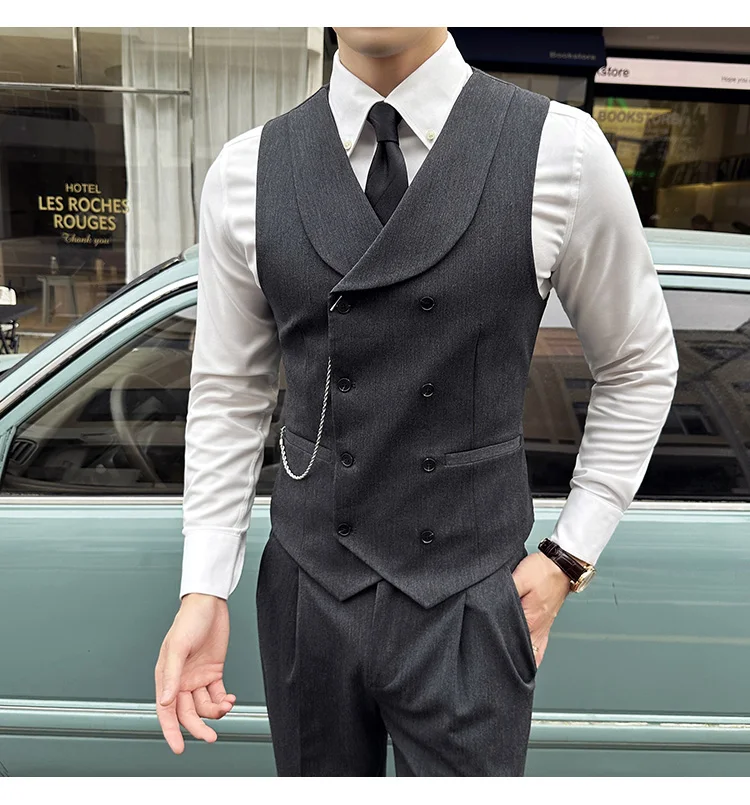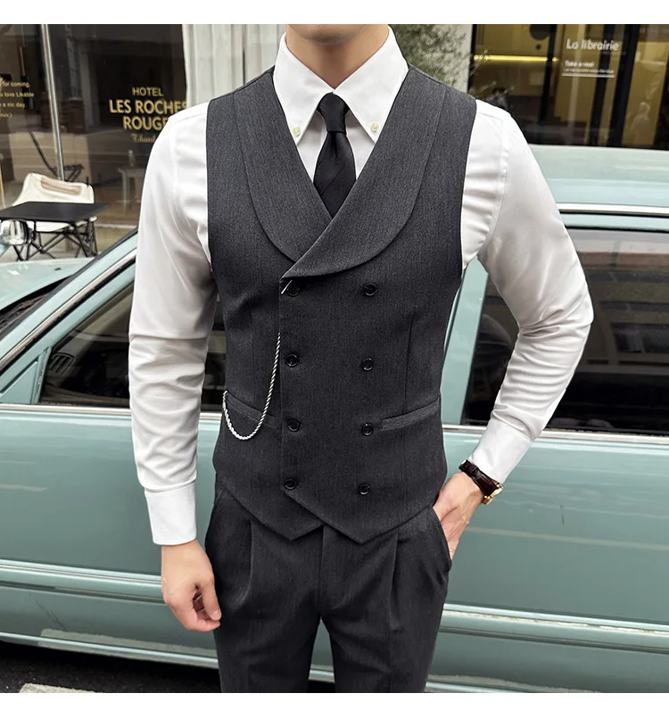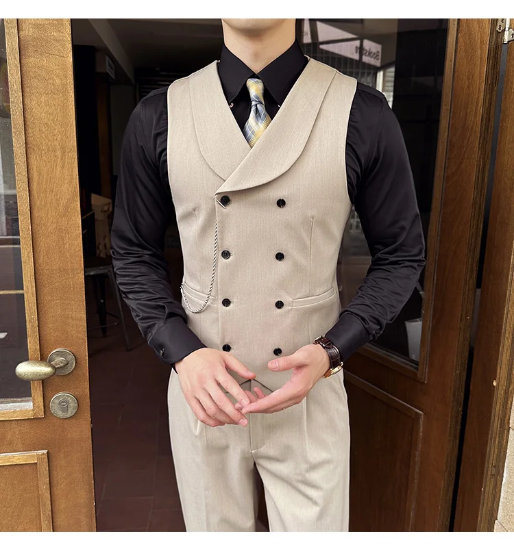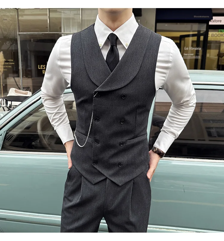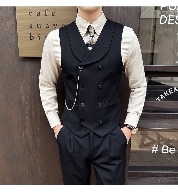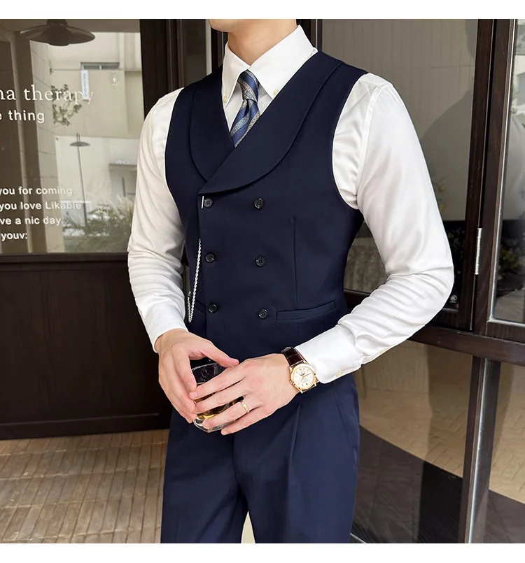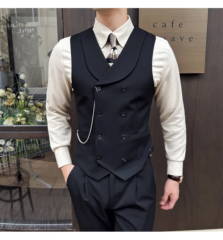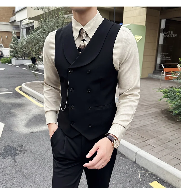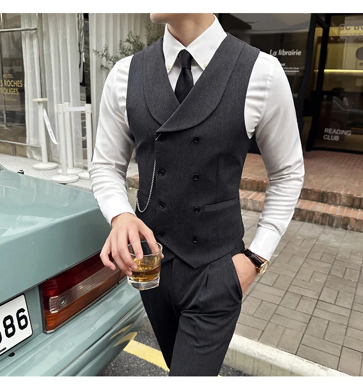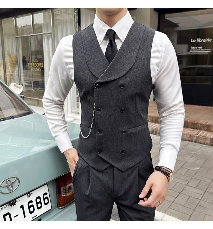 Double Breasted Suit Vest Men Business Formal Sleeveless Vest Slim Fit Waistcoat