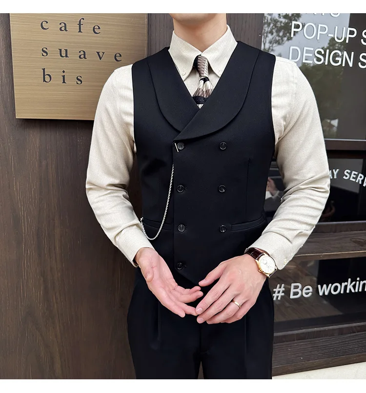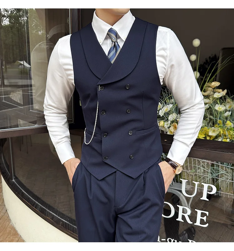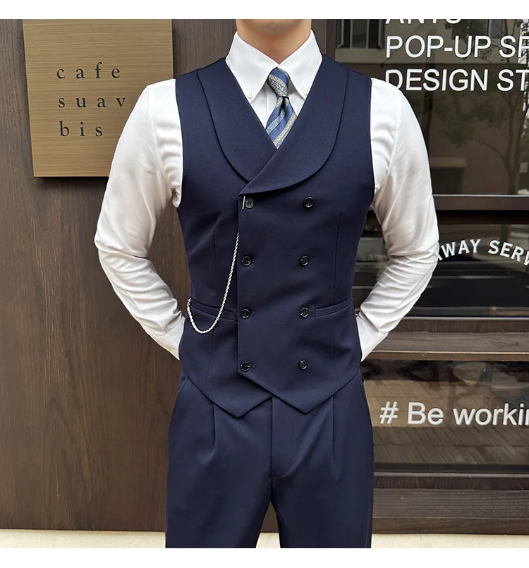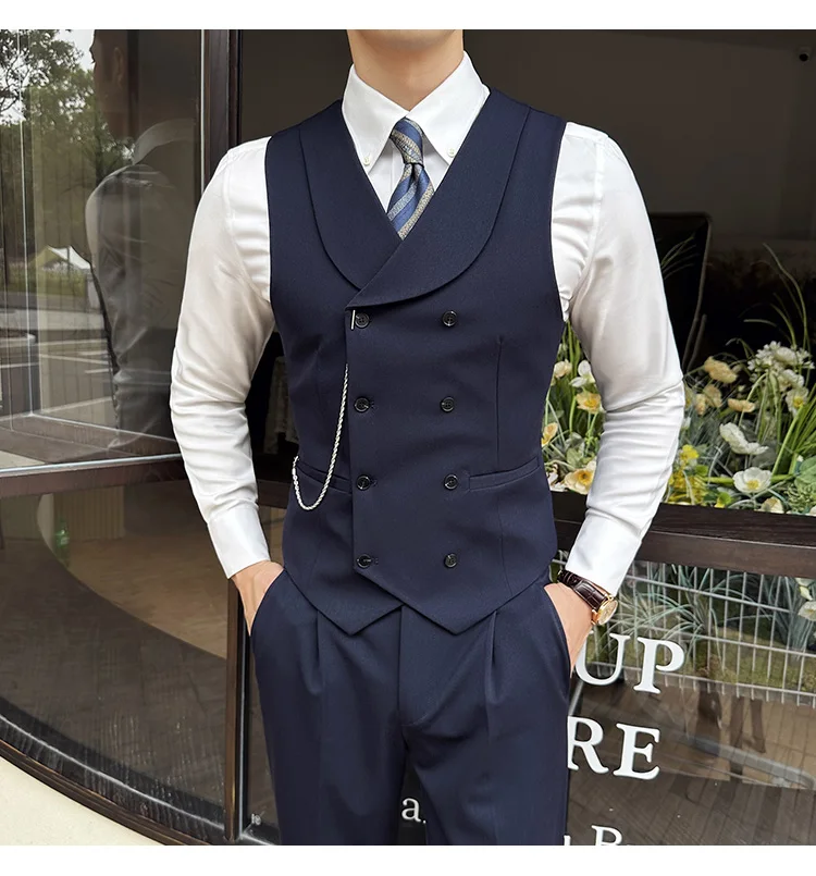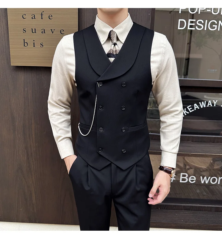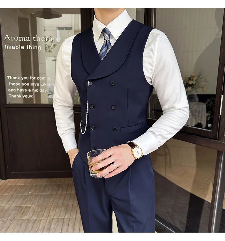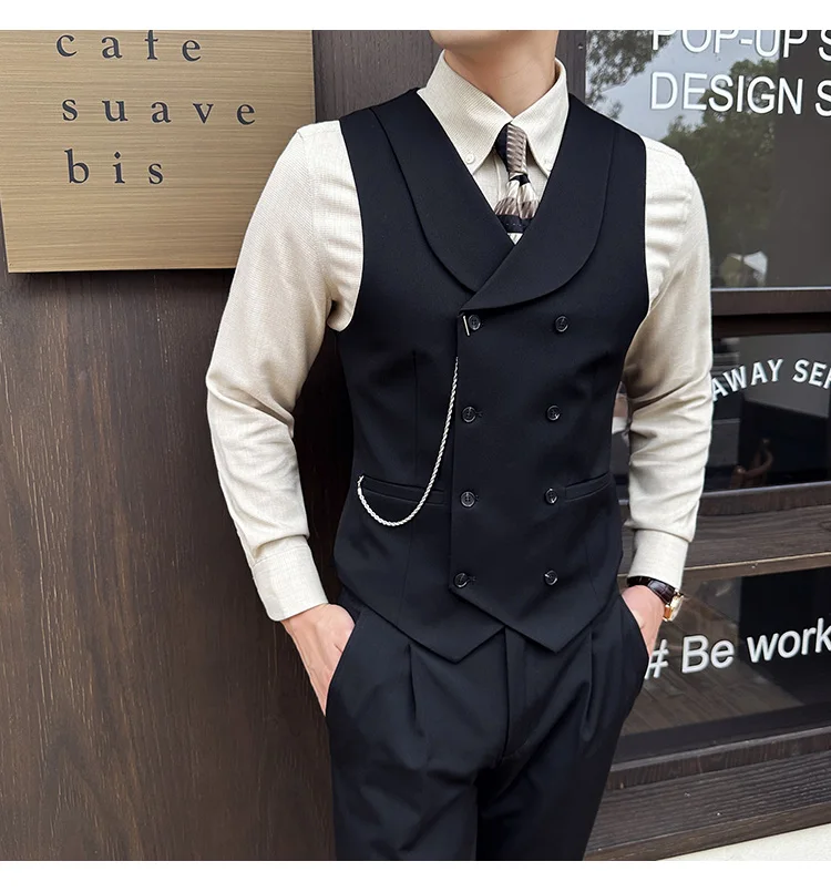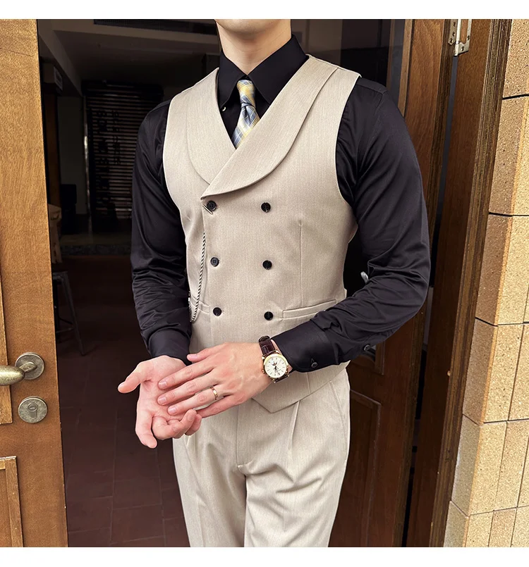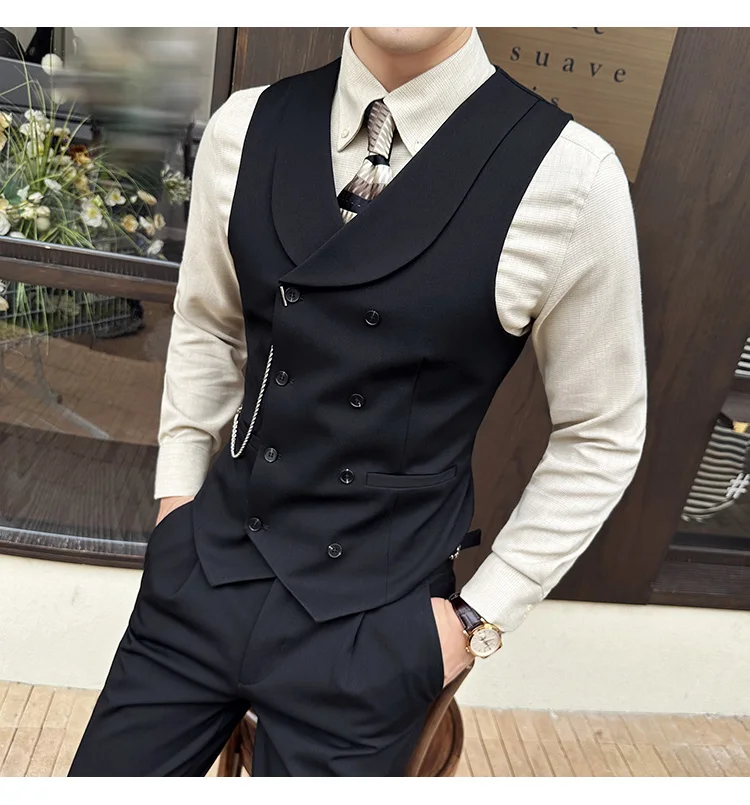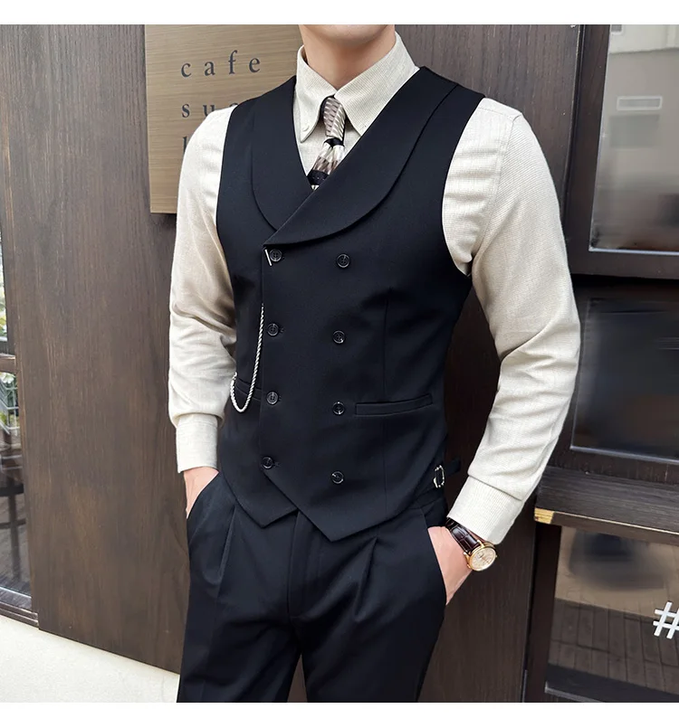Double Breasted Suit Vest Men Business Formal Sleeveless Vest Slim Fit Waistcoat