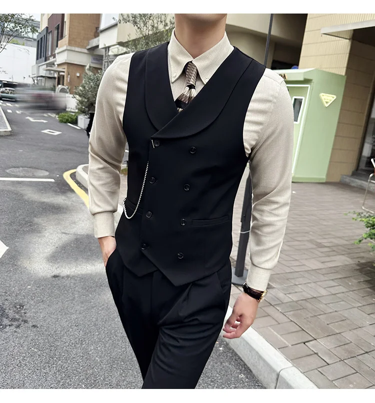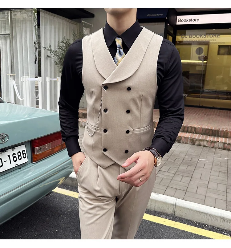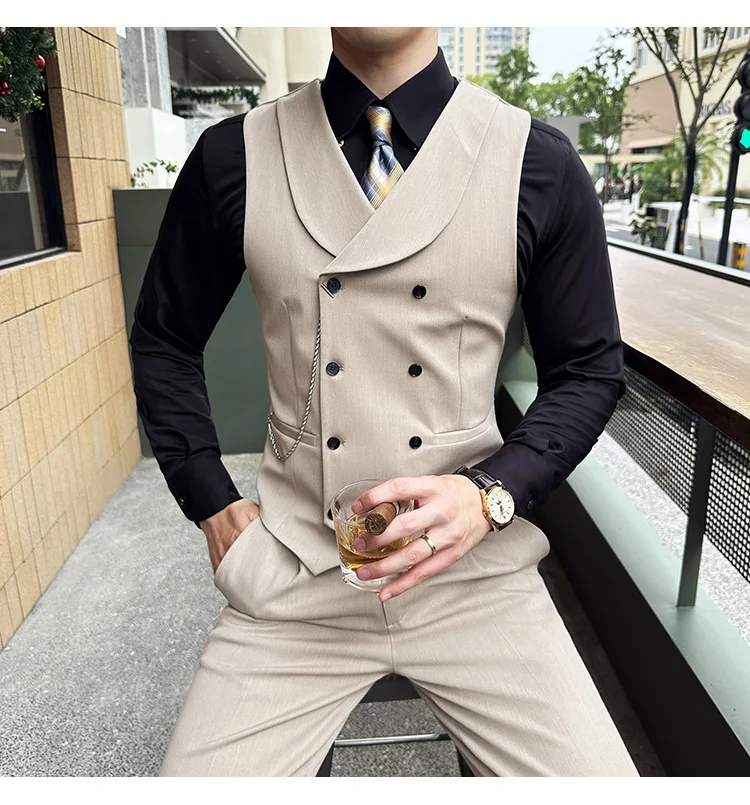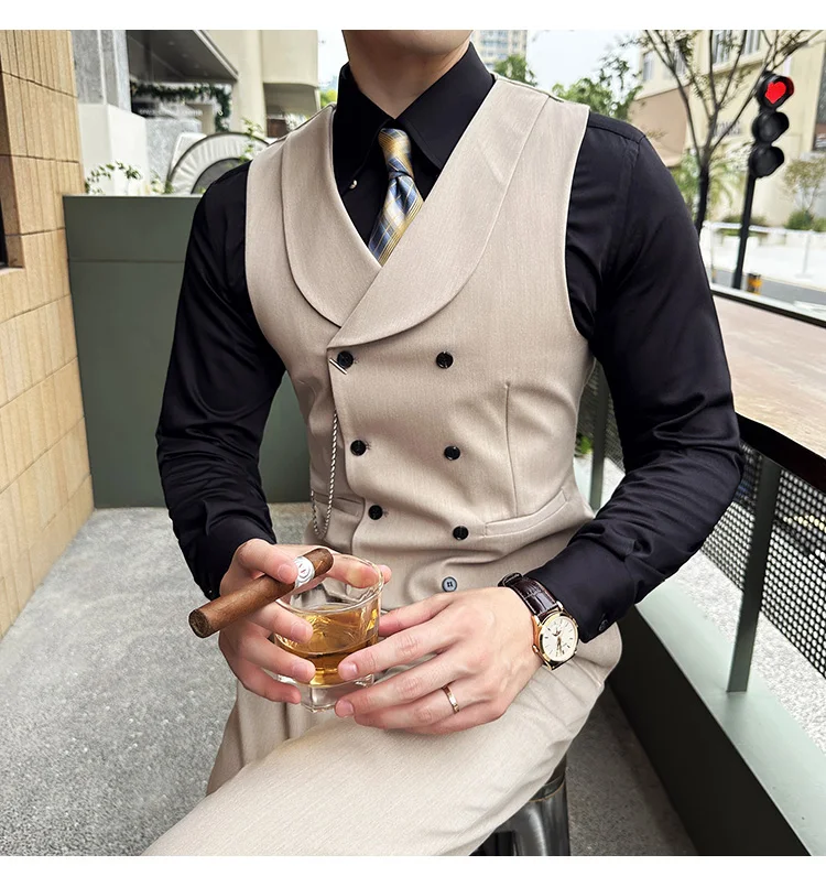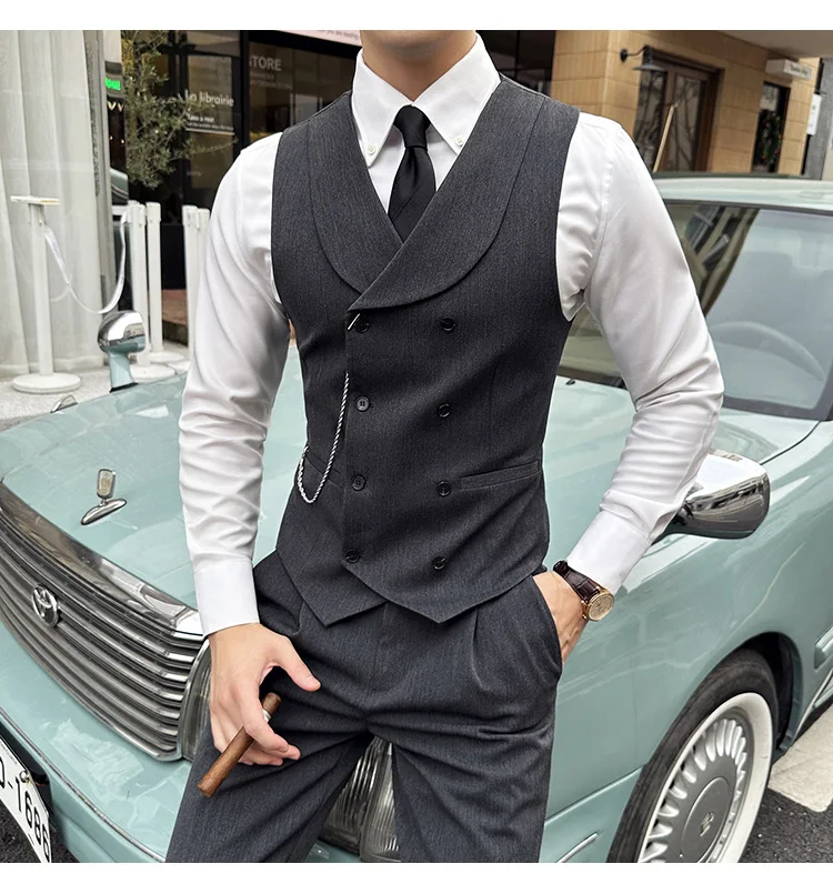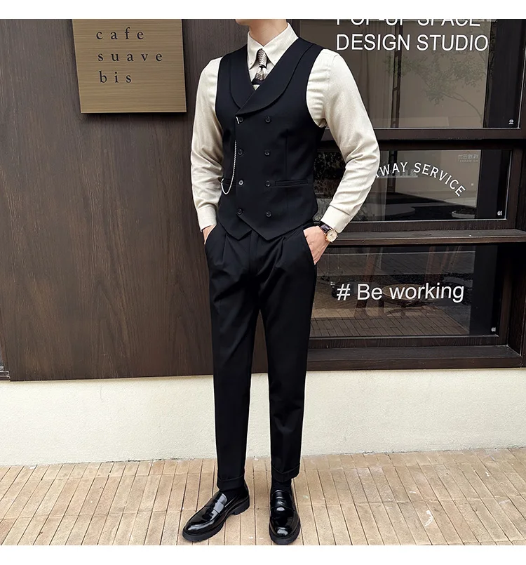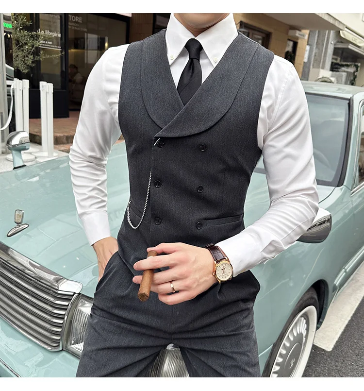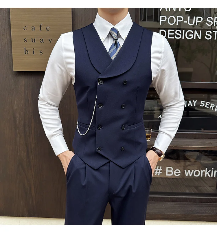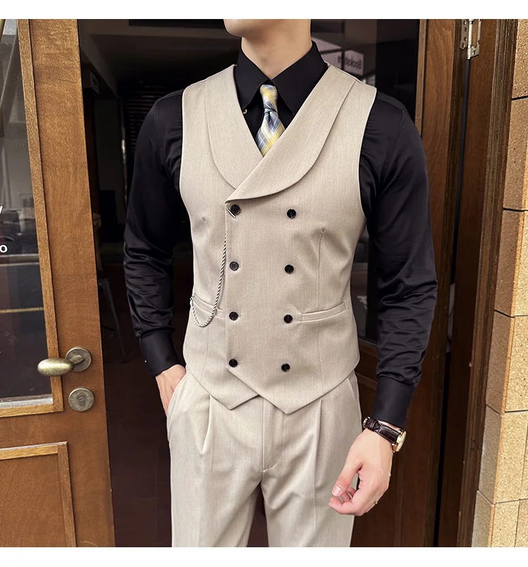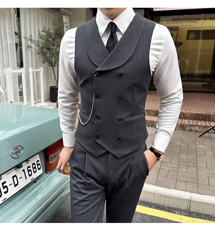Double Breasted Suit Vest Men Business Formal Sleeveless Vest Slim Fit Waistcoat