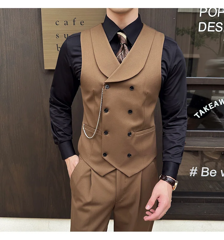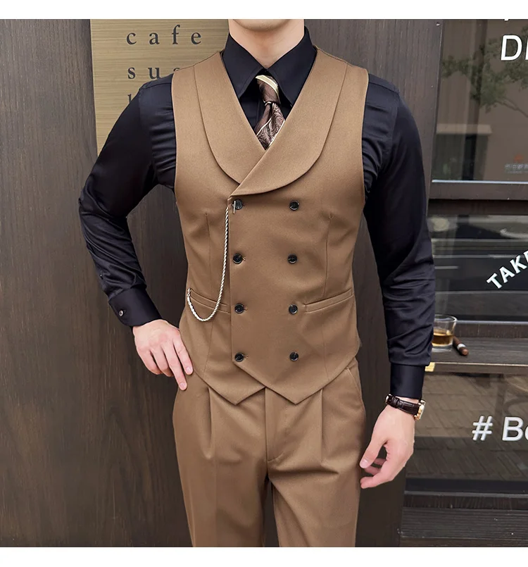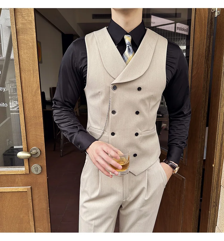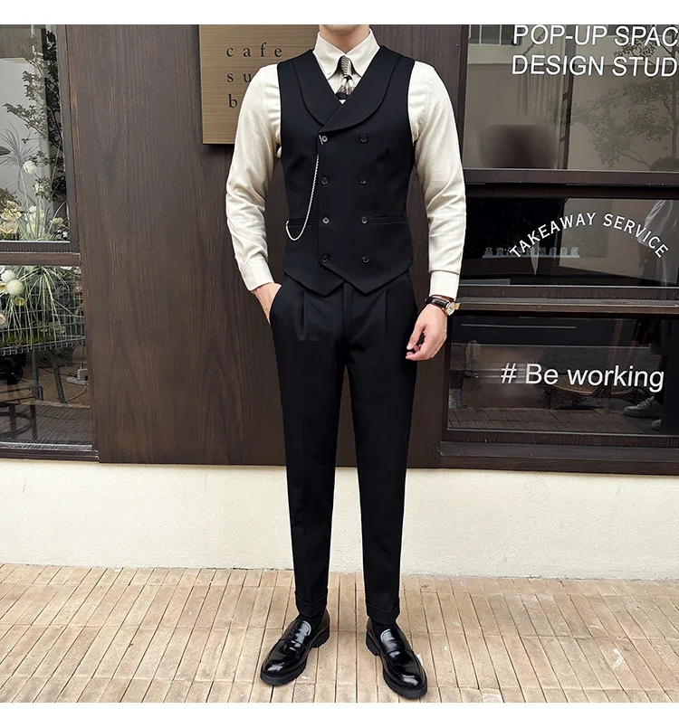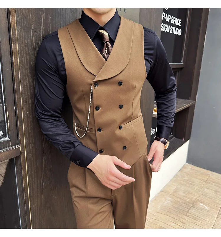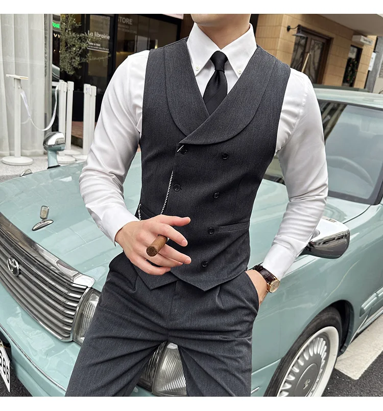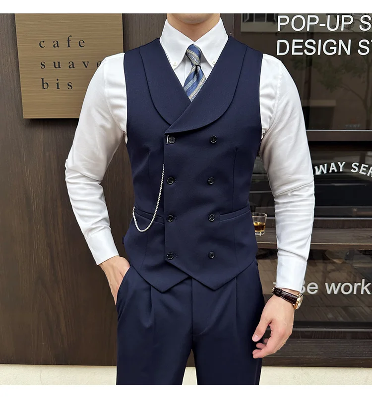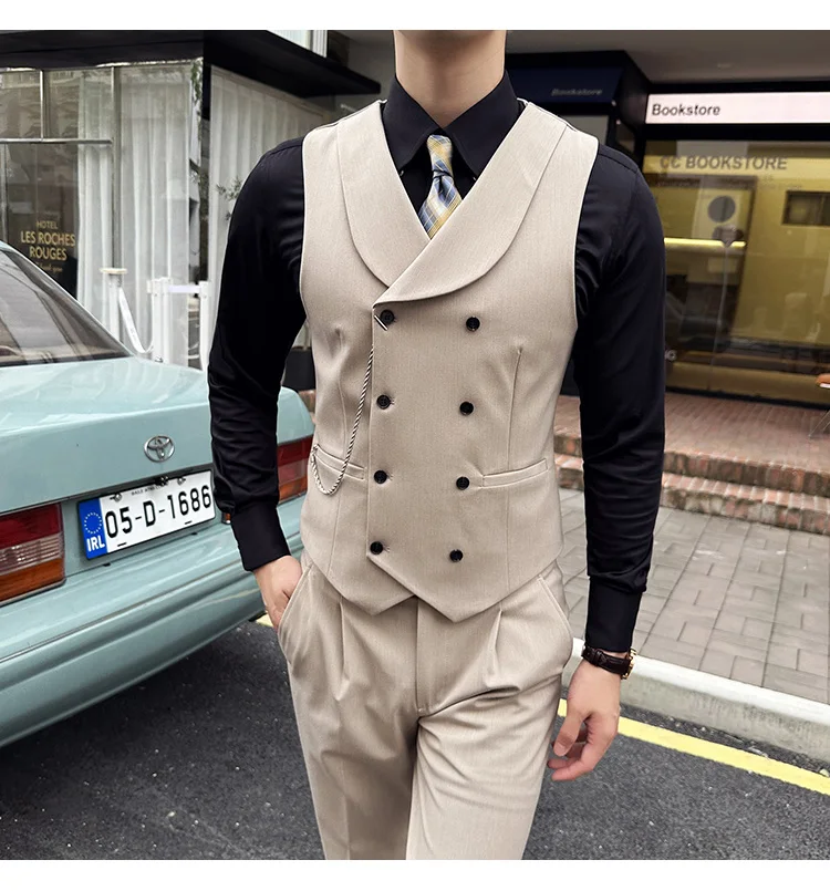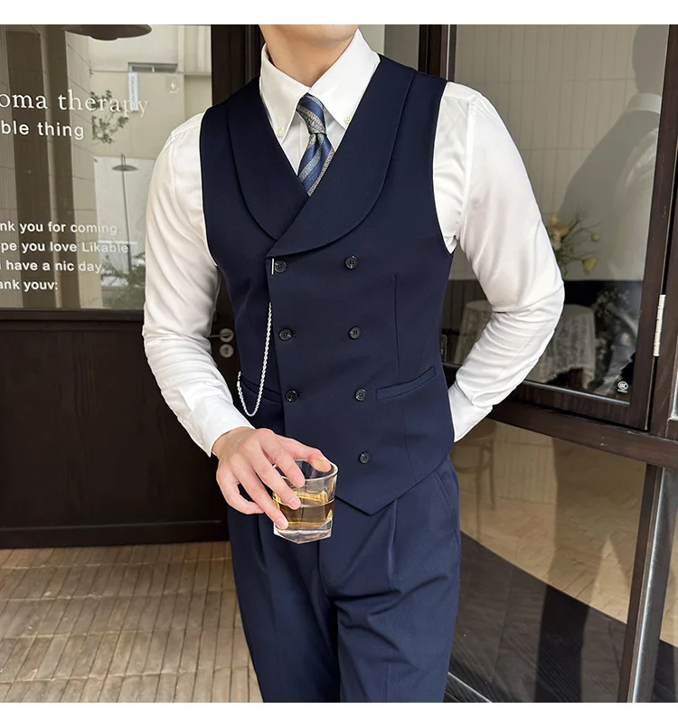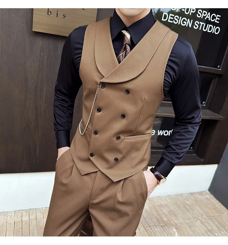 Double Breasted Suit Vest Men Business Formal Sleeveless Vest Slim Fit Waistcoat