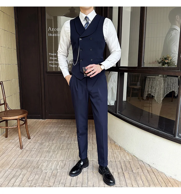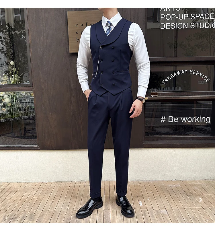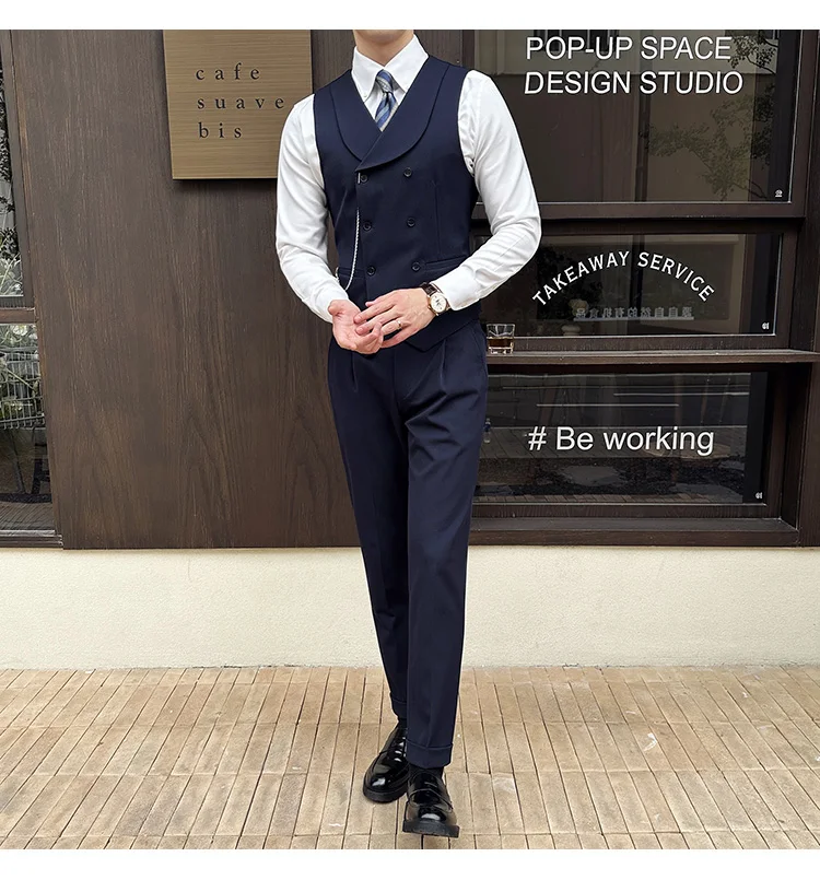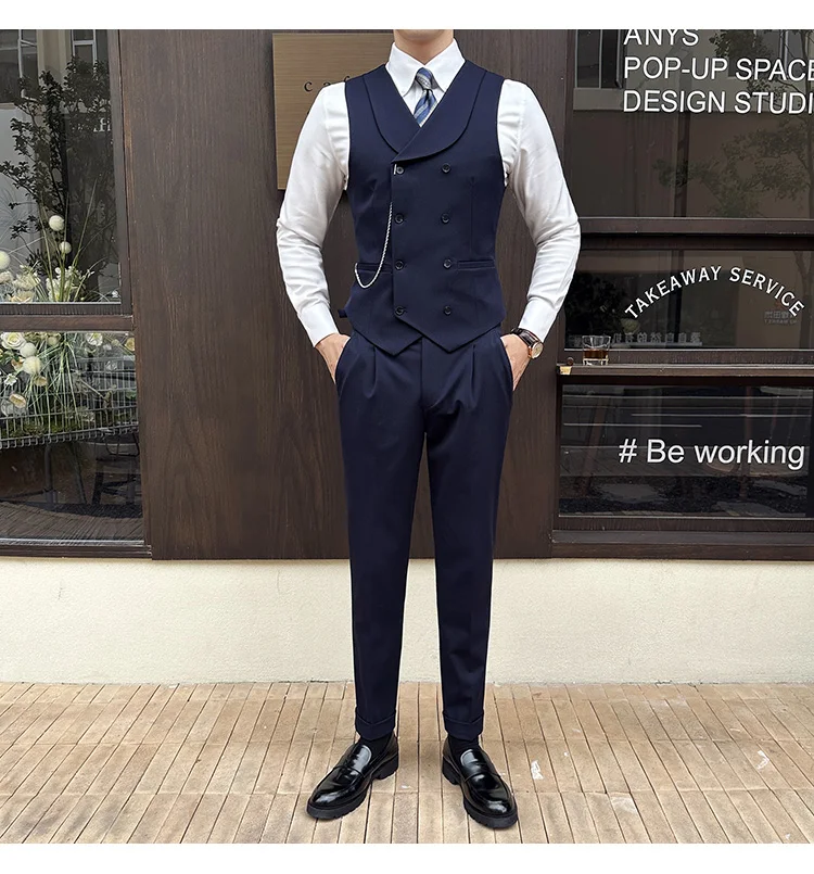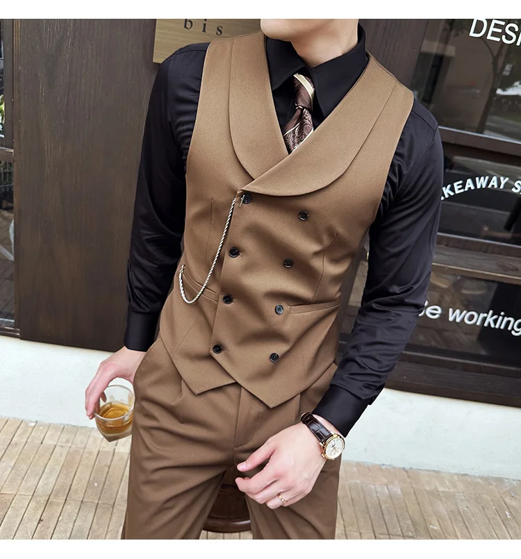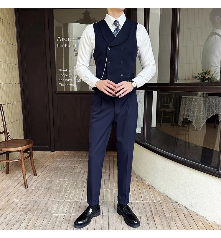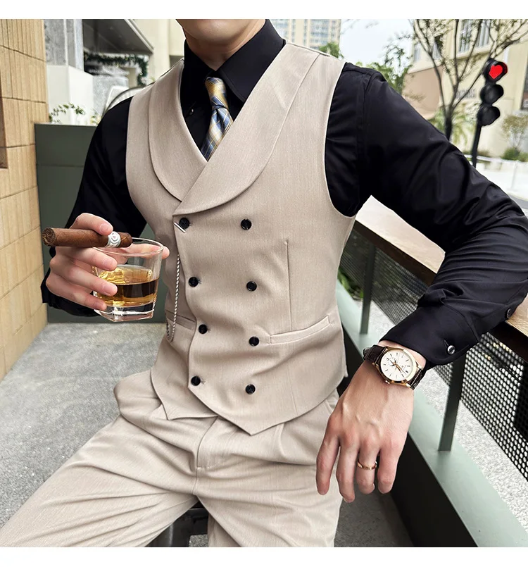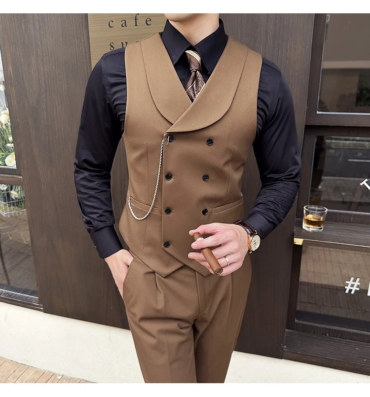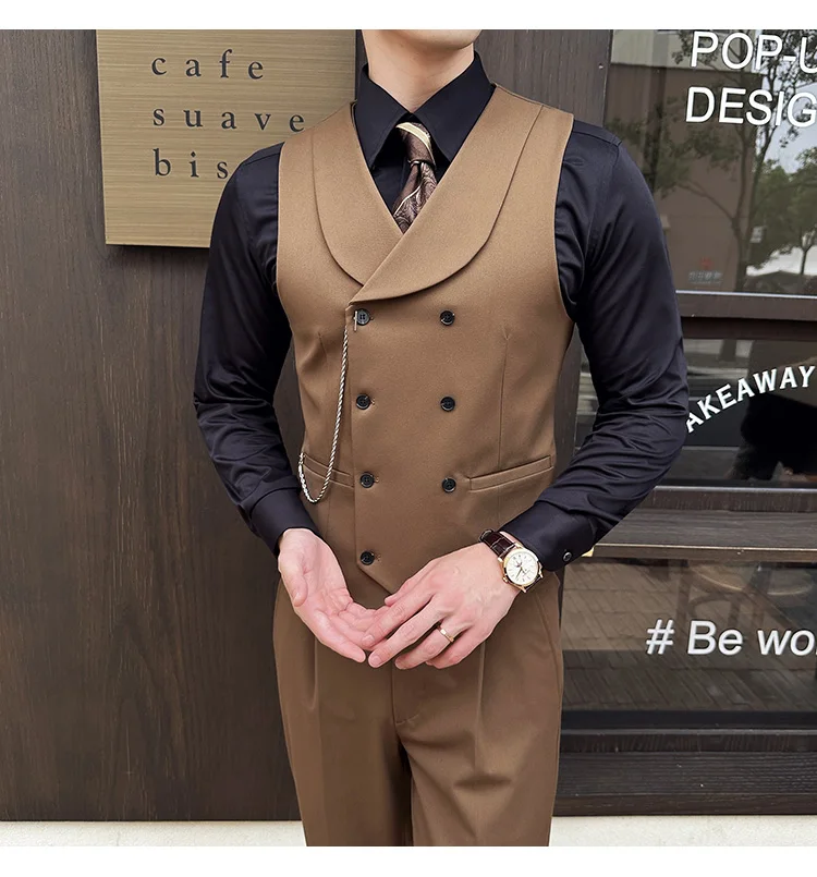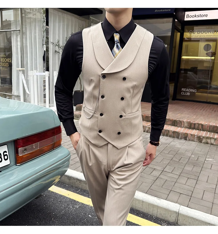 Double Breasted Suit Vest Men Business Formal Sleeveless Vest Slim Fit Waistcoat