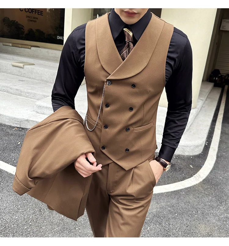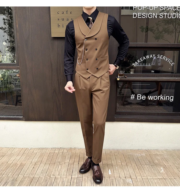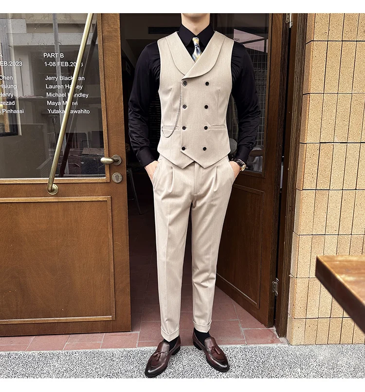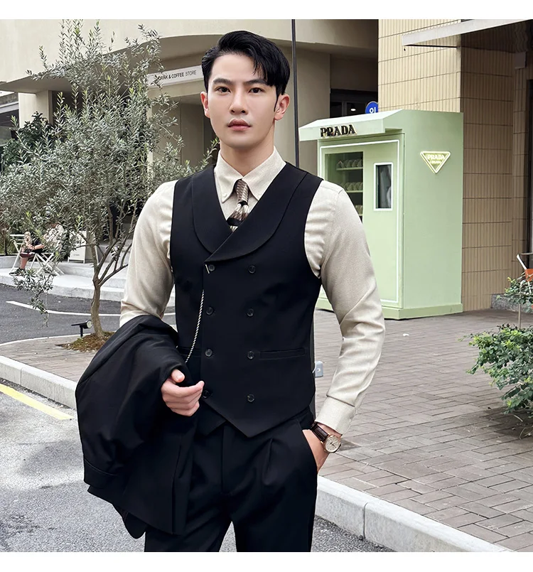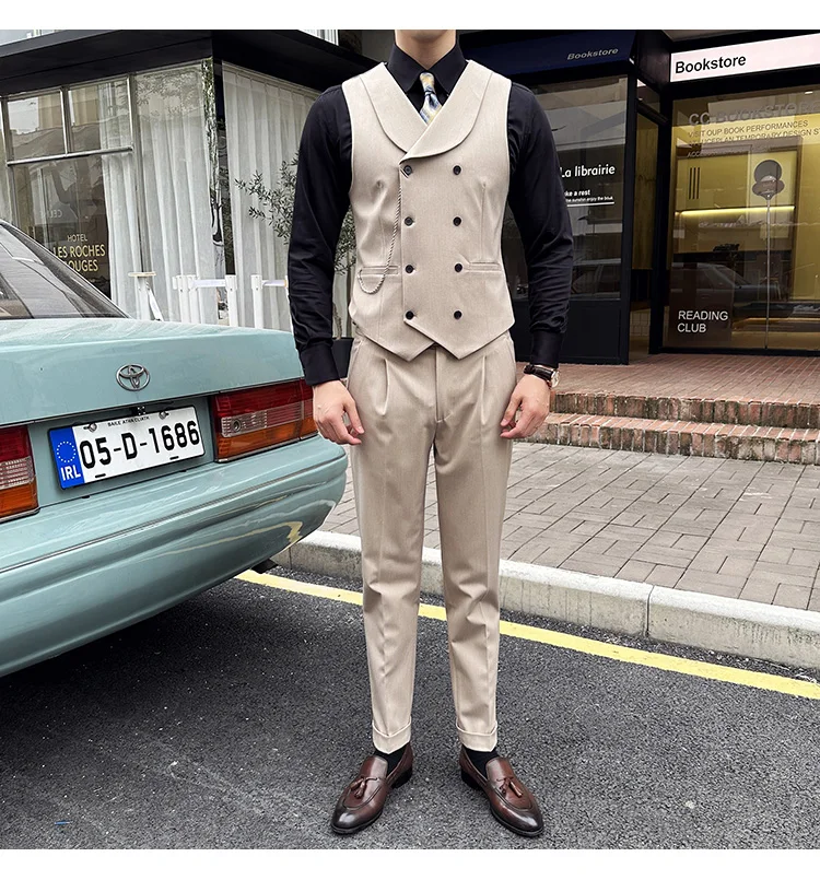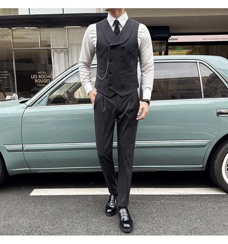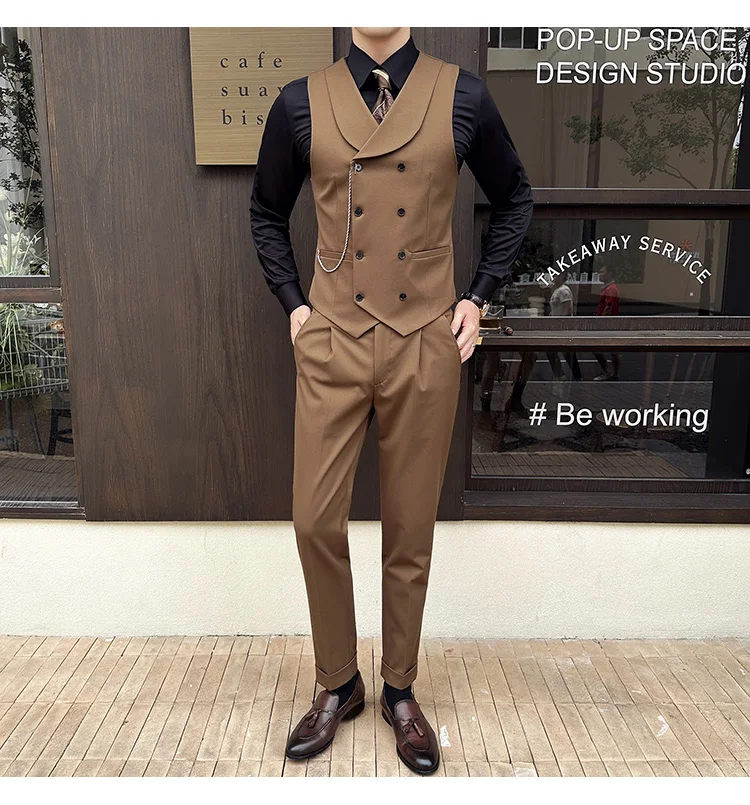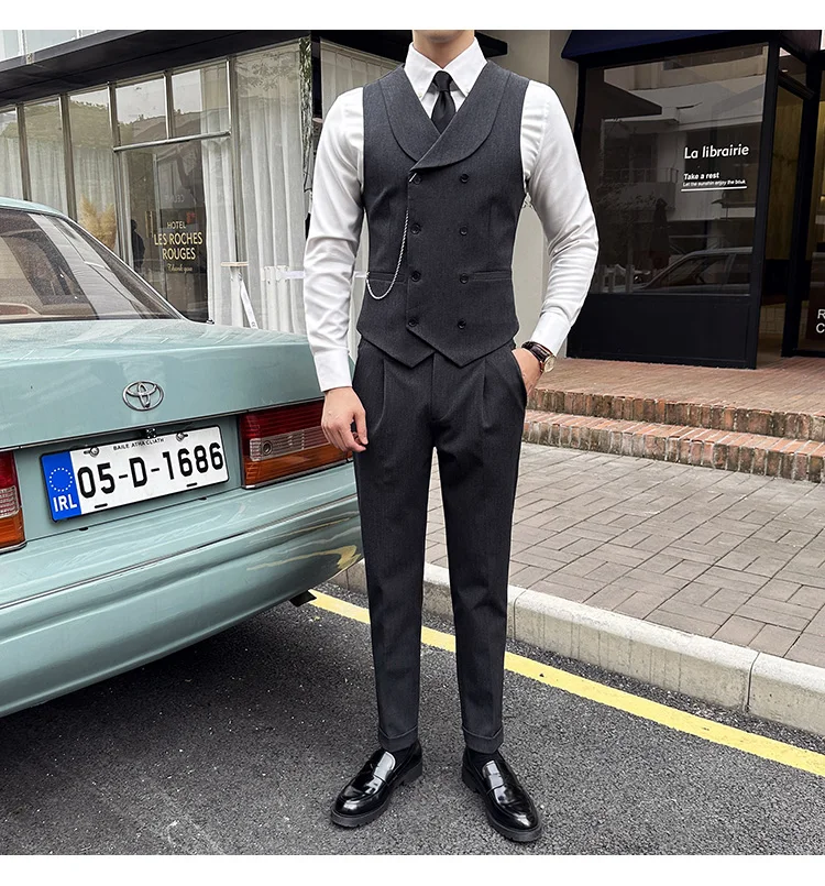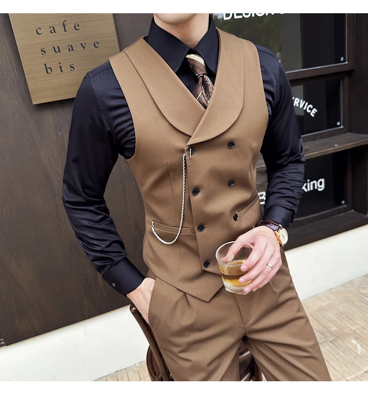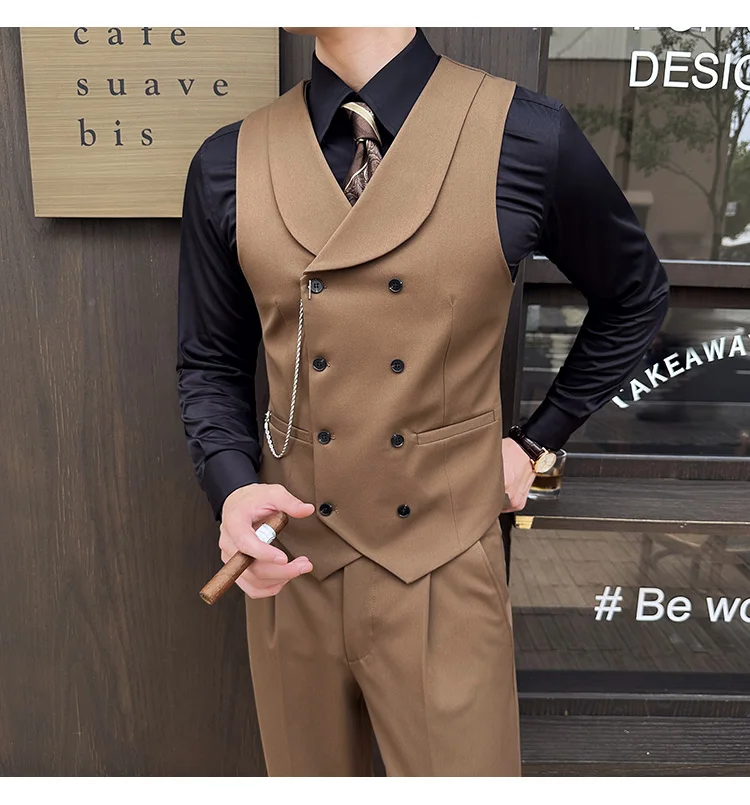 Double Breasted Suit Vest Men Business Formal Sleeveless Vest Slim Fit Waistcoat