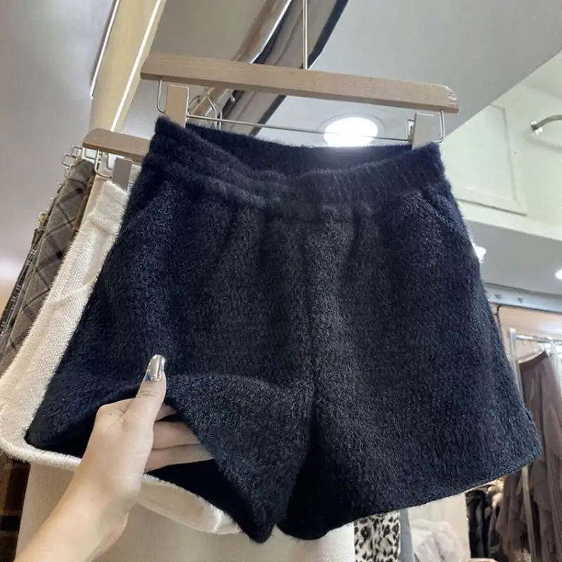 Autumn Chic Fluffy Shorts Women Fashion Solid Simple Loose Leisure Soft Young Popular All-match High Waist Short Trousers