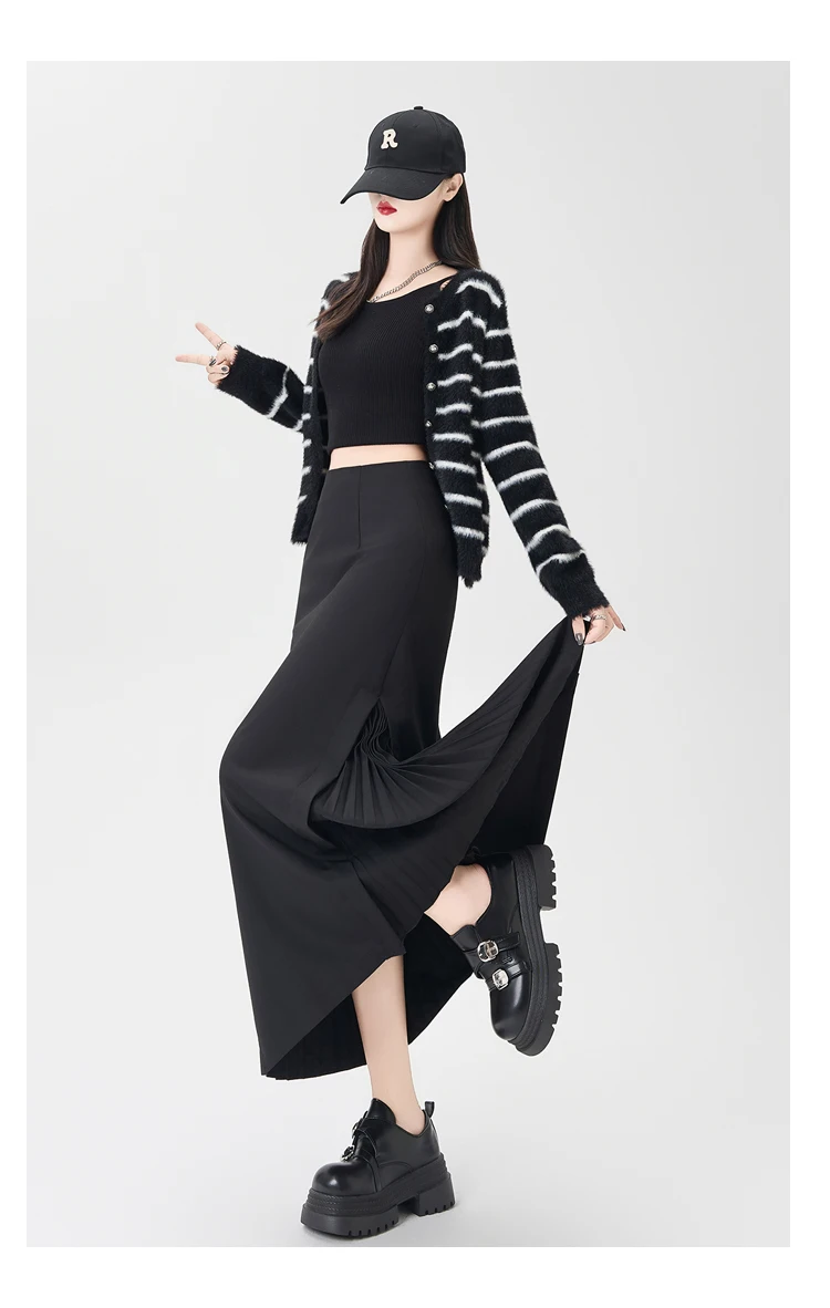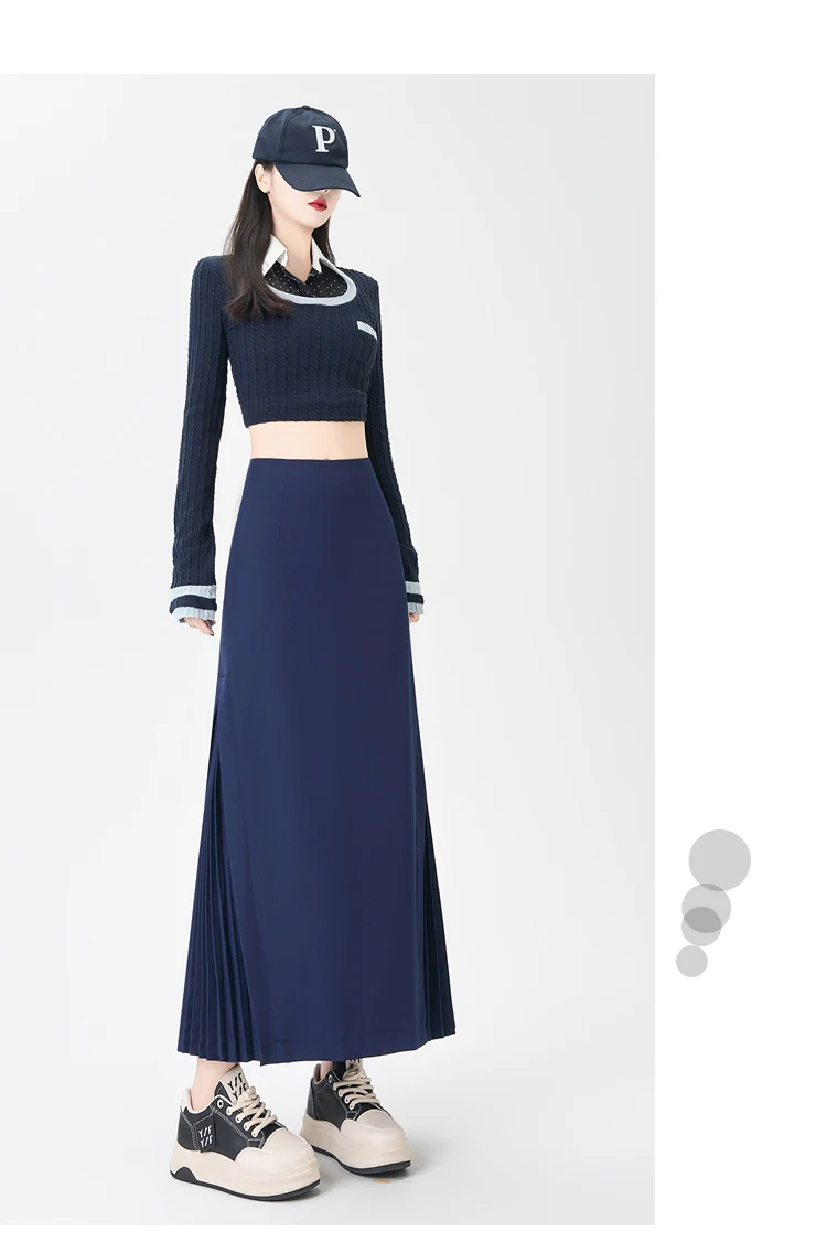 High Quality Side Pleated Skirt Women High Waist A Line Long Skirts Female Elegant